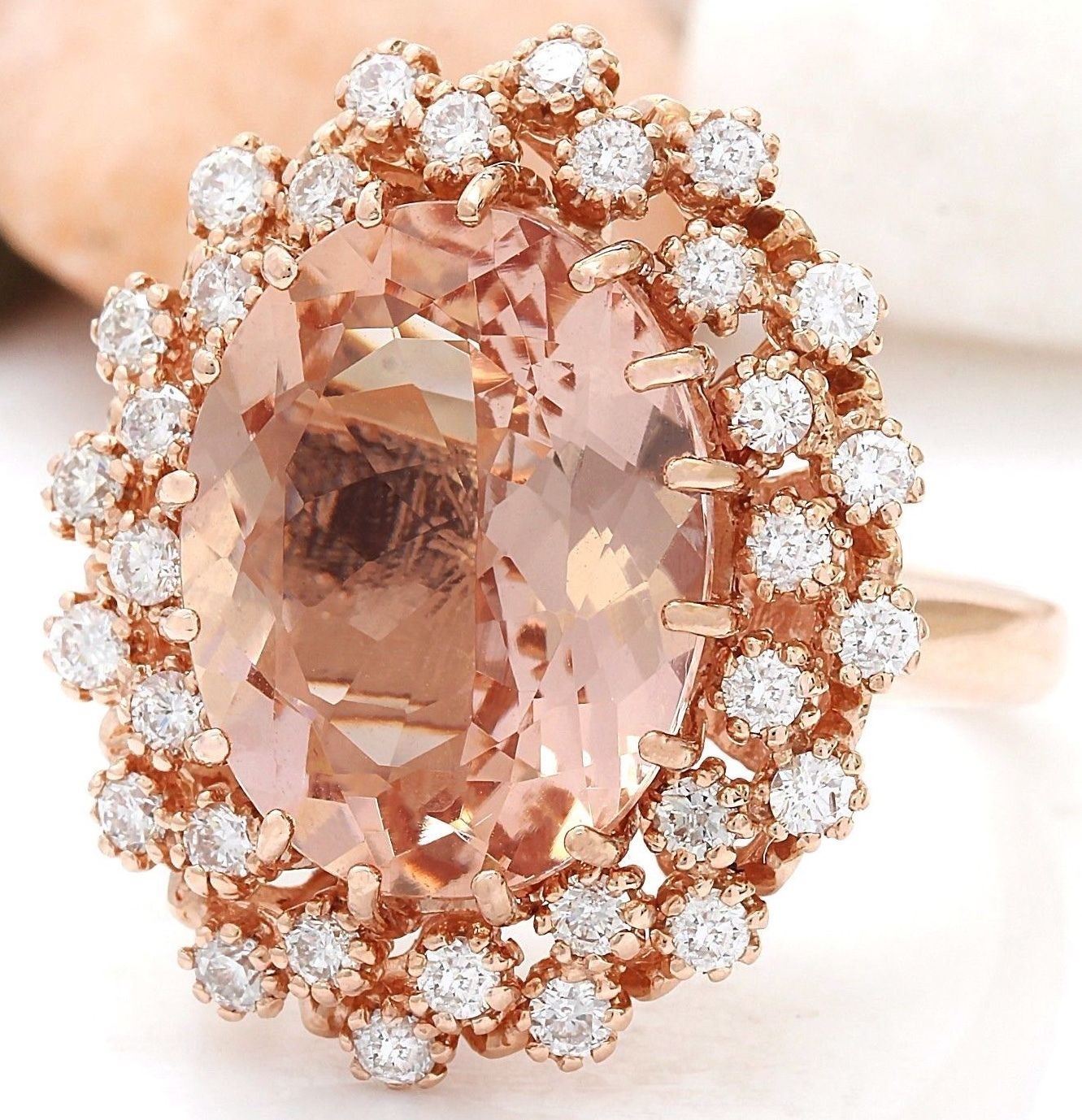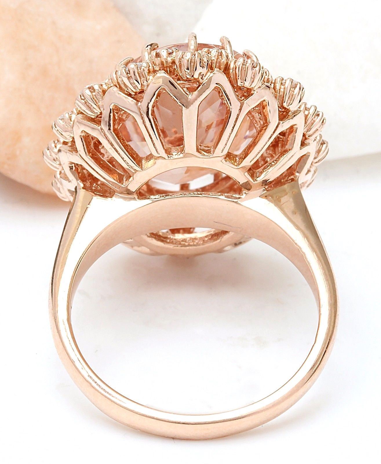 9.80 Carat Natural Morganite 18K Solid Rose Gold Diamond Ring