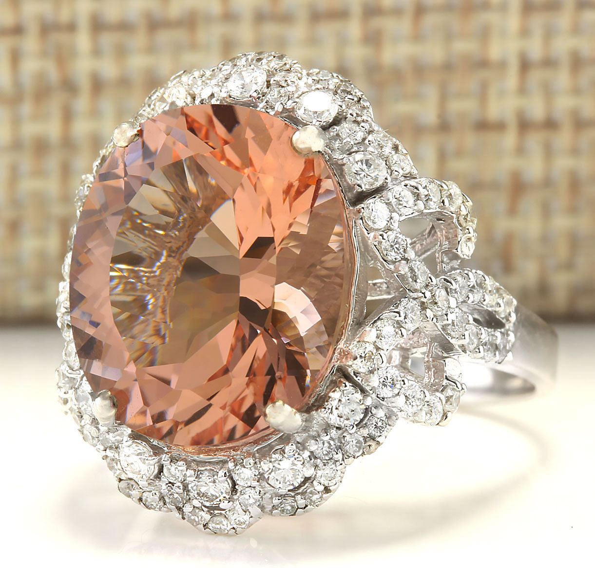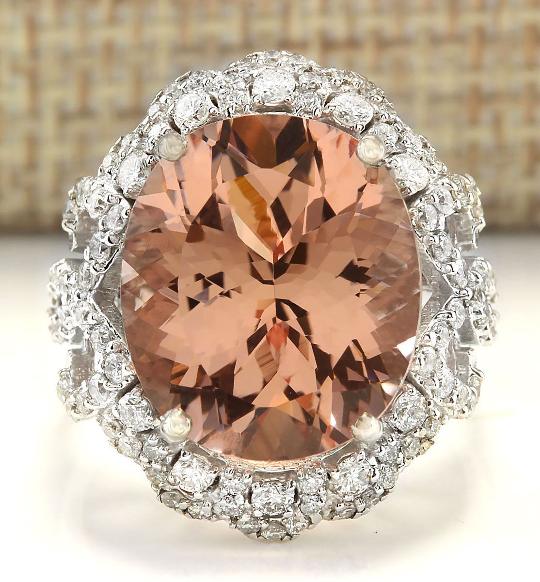 9.80 CTW Natural Morganite And Diamond Ring In 18K White Gold