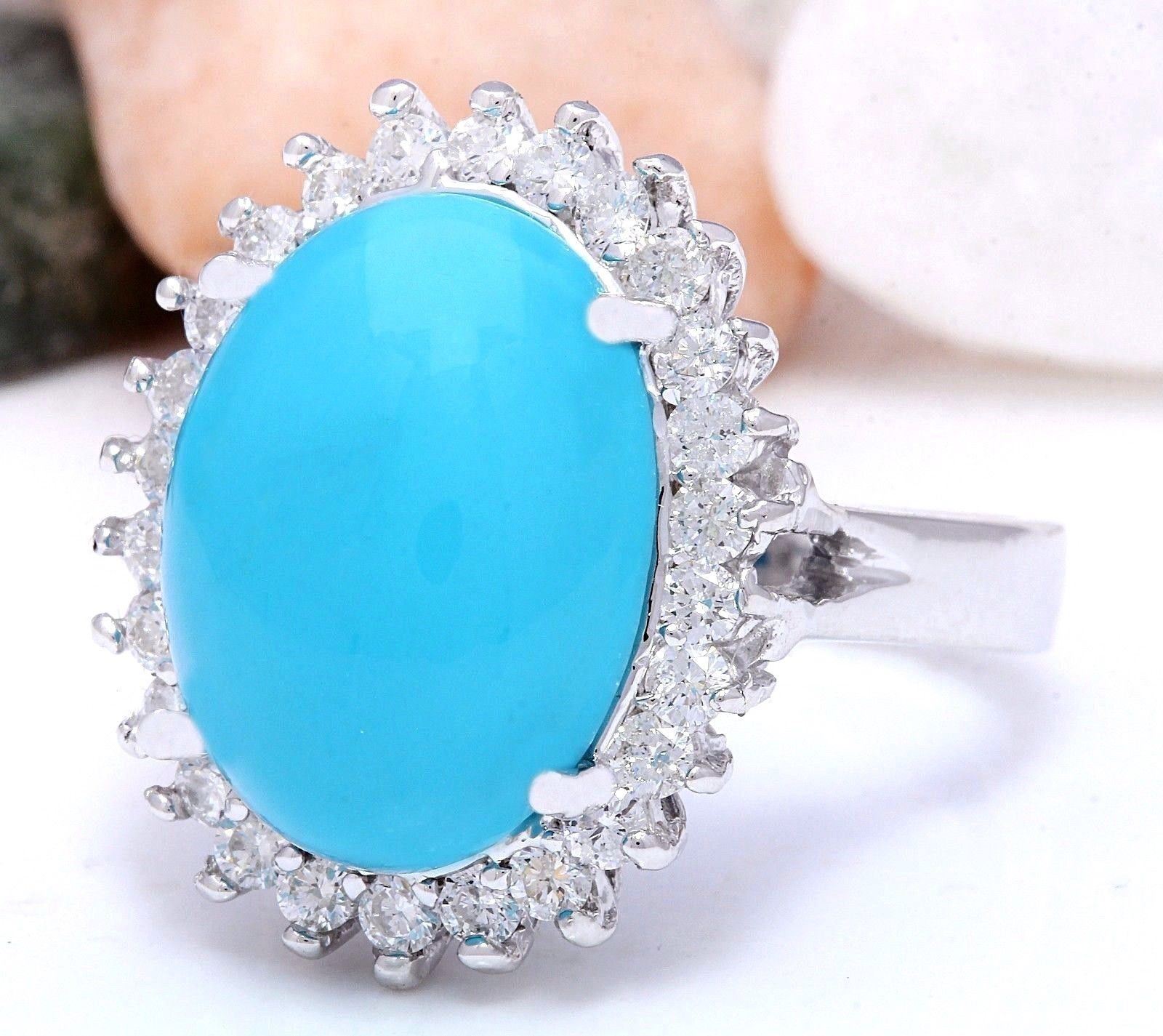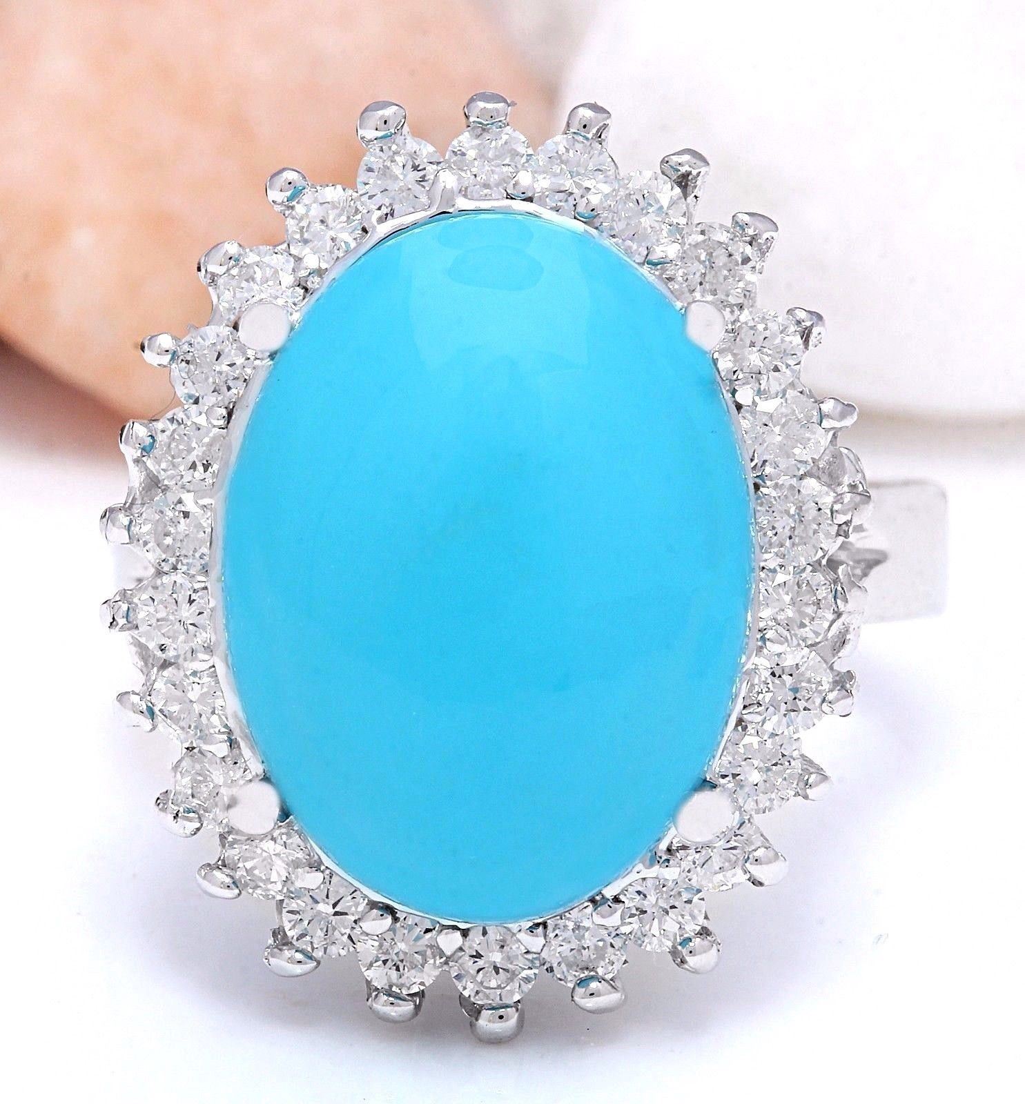 9.80 Carat Natural Turquoise 14K Solid White Gold Diamond Ring