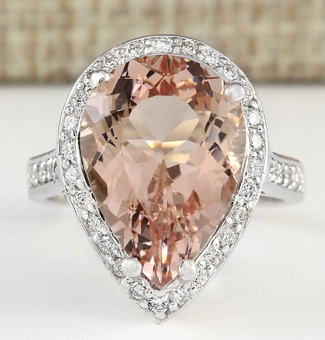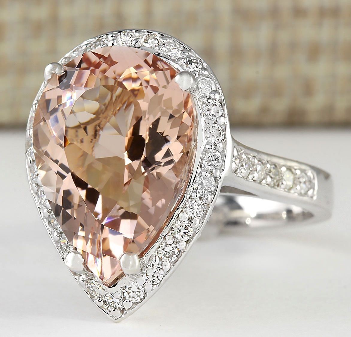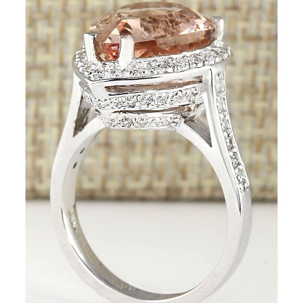 9.83 CTW Natural Morganite And Diamond Ring In 18K White Gold