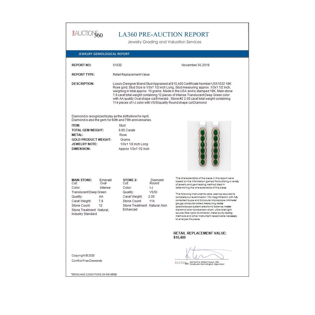 All sales are final, placing a bid is a legally binding obligation. All lots are sold as is, where is, with all the faults, imperfections, omissions and errors in the written description, estimates, appraisals, graphics and photography. USJL is not responsible for any errors or omissions in the description, graphics or photography provided or in the bidding software. Due diligence to verify the condition and description of a lot is the sole responsibility of the Bidder prior to placing any bid. Returns may only be made with the advance written authorization of USJL and are in USJL's sole discretion to approve. To request a return you must provide a written request fully explaining the basis for the return no later than 4 days after your receipt of the lot. Under no circumstances will any amounts other than the winning bid amount be refunded. A restocking charge of 19% of the full invoice amount may apply in USJL 's sole discretion. Any allowed returns must be received in exactly the same condition as when originally shipped to Buyer, or they will be returned to buyer at Buyer's cost. Any unauthorized returns will be refused. DELIVERY REFUSAL OF ITEMS SHIPPED BY US JEWELRY LIQUIDATION TO THE BIDDER CONSTITUTES AN UNAUTHORIZED RETURN IN DIRECT VIOLATION OF THESE GENERAL TERMS AND CONDITIONS.