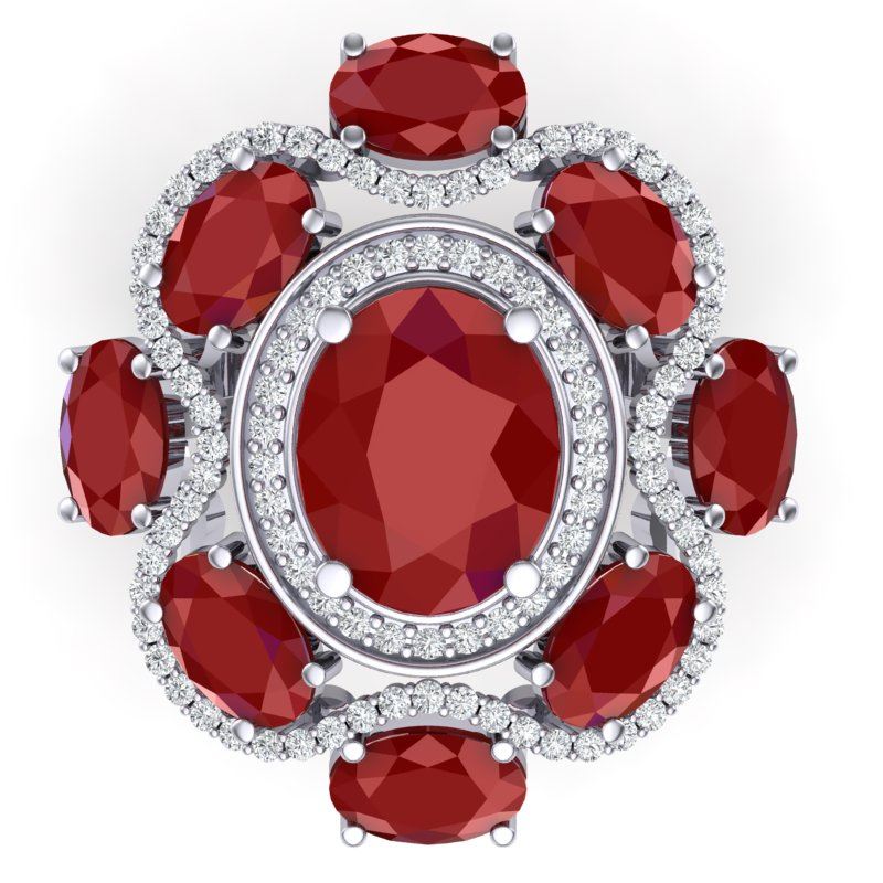 9.86 CTW Royalty Designer Ruby & VS Diamond Ring 18K White Gold ---- Luxury Designer Brand RIng Appraised Retail Price at $19,200 ---- SKU Number US39294 18K White gold RIng Size is 7, RIng measuring approx. 1 1/4 x 1 1/4 Inches, weighing in total approx. 14 grams. Made in the USA and is stamped 18K, Main stone 3.33 carat total weight containing 1 pieces of Intense Mid-Opaque Red color with AAA quality Oval shape cut Ruby , Stone #2 5.68 carat total weight containing 8 pieces of Intense Mid-Opaque Red color with AAA quality Oval shape cut