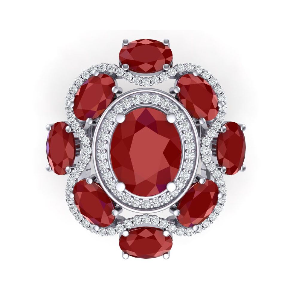 9.86 ctw Designer Ruby & VS Diamond Ring 18K White Gold
