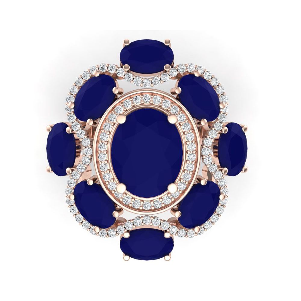 9.86 ctw Designer Sapphire & VS Diamond Ring 18K Rose Gold