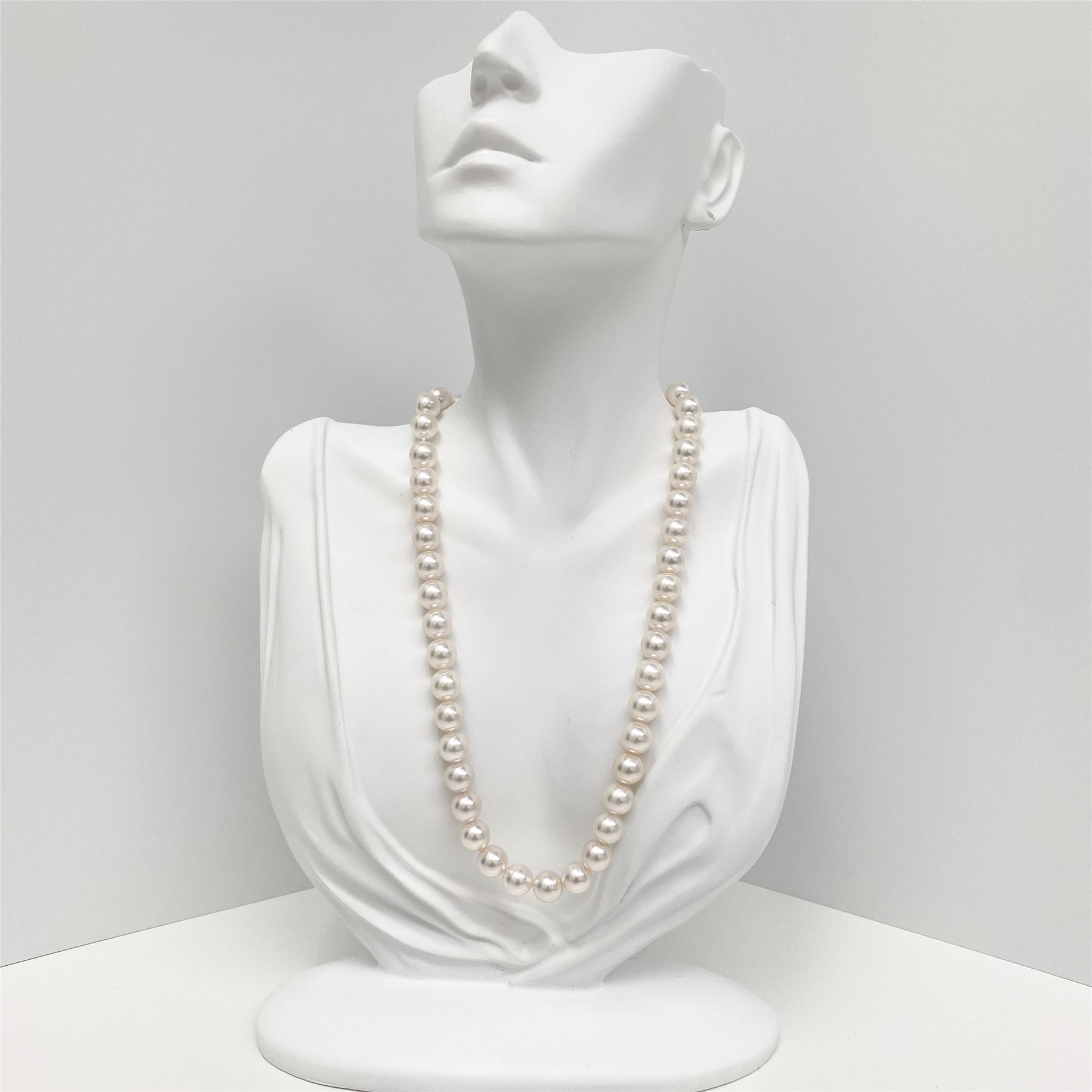 AAA Quality, Japanese Akoya Large Size Pink Overtones Round Pearl Necklace, 18 inches hand-knotted with gold fish-hook clasp #CP79