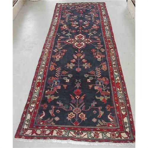 This is a hand woven runner rug from Hamedan in Persia?..CC 10 years old, washed, clean, full pile, in exc, condition, ready to use....Size is 9' 9" x 3' 4"....Hand woven, wool pile, cotton foundation?..SHI by UPS, fully insured, trackable online to USA and canada $25....No Shipping available to PO boxes, P.Rico, Alaska, Hawaii, International?..Can pick up in person by appointment?..Canadian buyers please add GST if outside BC, Pst and GSt if inside BC to the final price including SHI charges...USA customers:-SHI charges are to your door, nothing extra or hidden.....Combined shiiping is available...