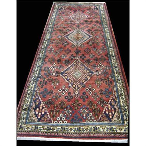 This is a han dwoven runner rug from Josheghan area of Persia. wool pile, cotton foundation, hand woven....Ground colour is orangy red shade not the usual plum red from Josheghan area... cc late 1990's very good condition, very good pile, no patches, no NO pile areas, washed, clean, fringes intact, no tears, holes, stains, ready to use... Size is 12' x 3' 4" .....Combined shipping available to save you money.....SHI by UPS to Canada $30 to your door no extra charges to USA $40...Any Q please call or email. Thanks