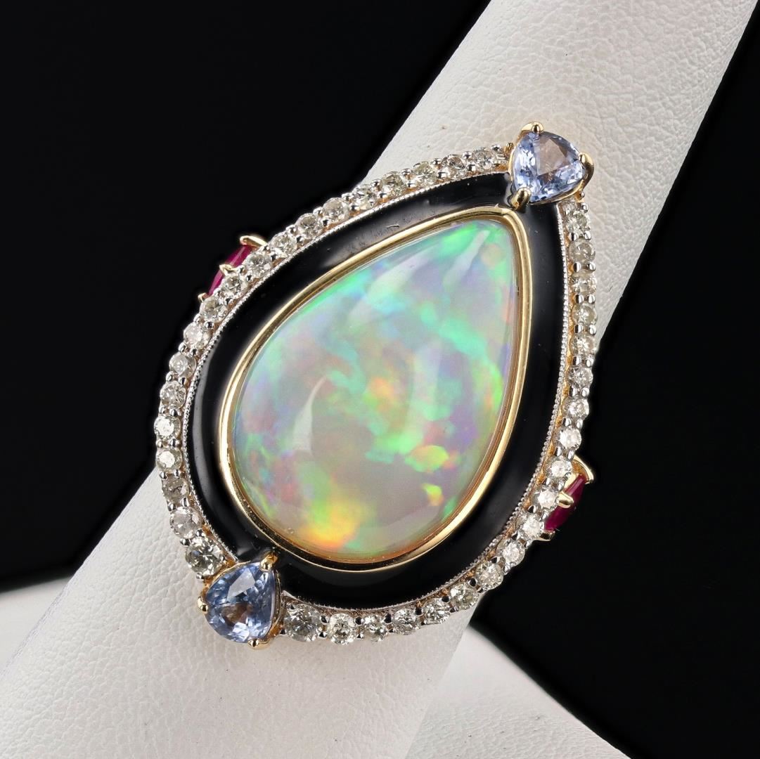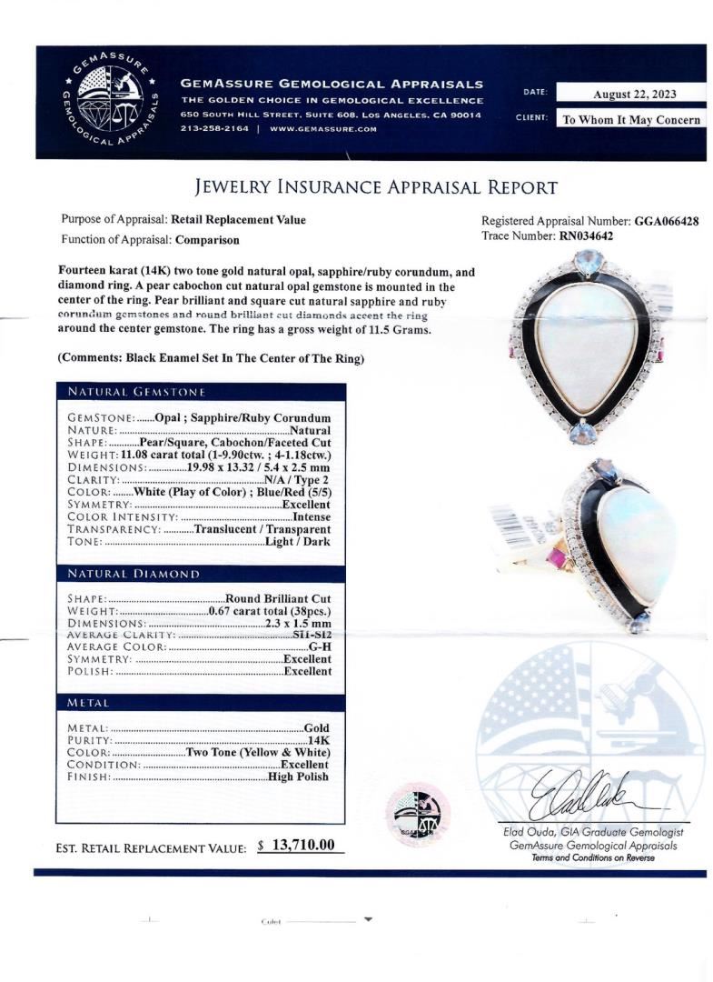 9.90 ctw Opal, 1.18 ctw Ruby/Sapphire and 0.67 ctw Diamond 14K Yellow and White
