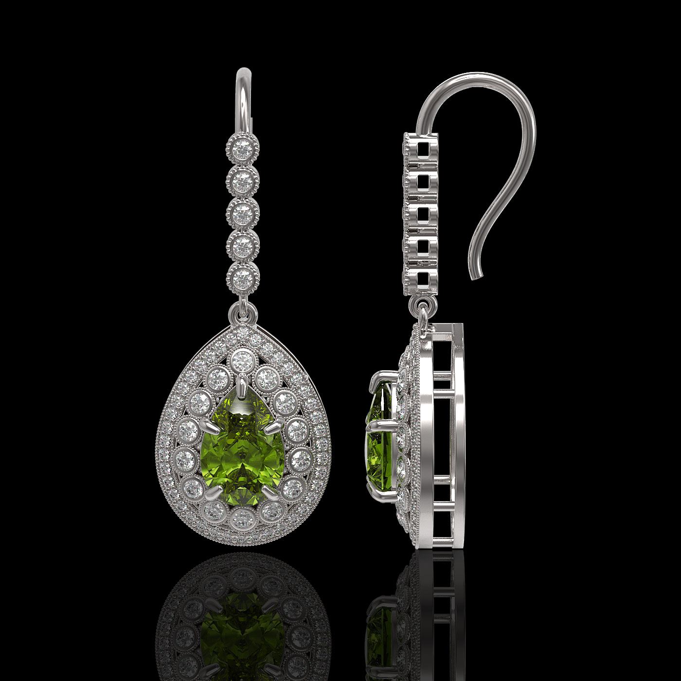 REF-318H4R - SKU: 43166 ---- 9.95 ctw Tourmaline & Diamond Victorian Earrings 14K White Gold