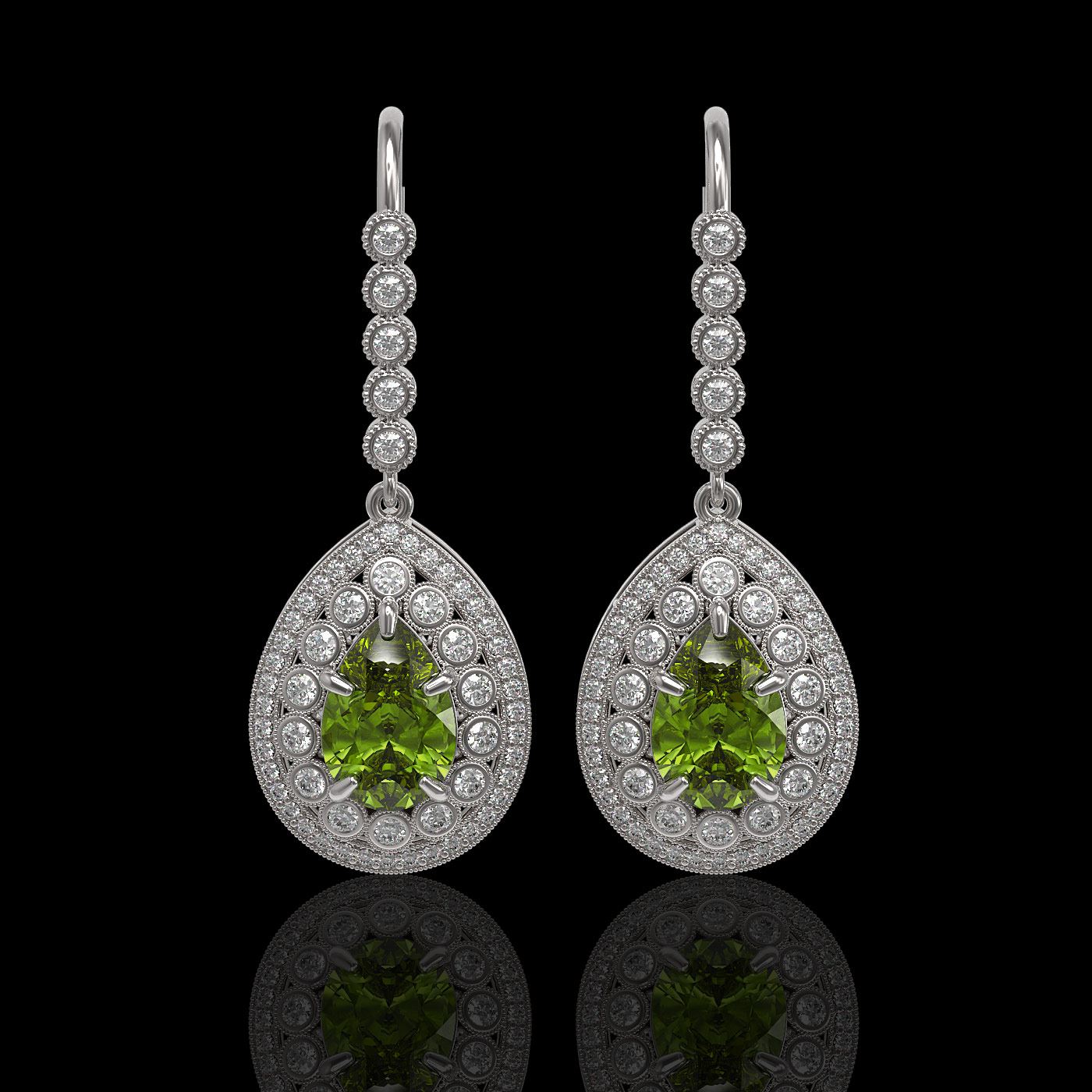 REF-318H4R - SKU: 43166 ---- 9.95 ctw Tourmaline & Diamond Victorian Earrings 14K White Gold