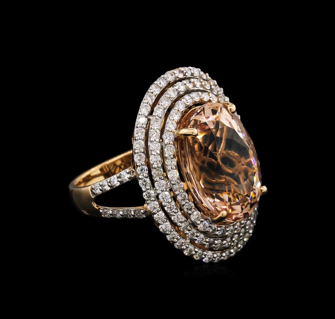 One ring featuring: 14KT rose gold weighing 7.45 grams containing one kunzite with a total weight of 9.97ct and diamonds with a total weight of 1.79ct.