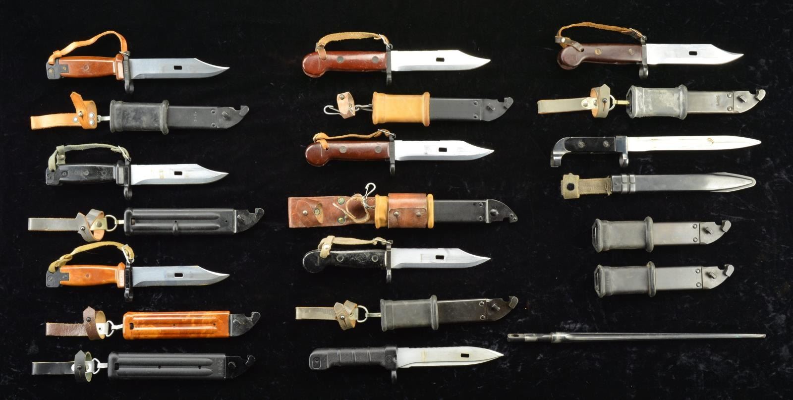 4 - AKM Type 1 Bayonets w/ scabbards; 1 w/ leather frog./