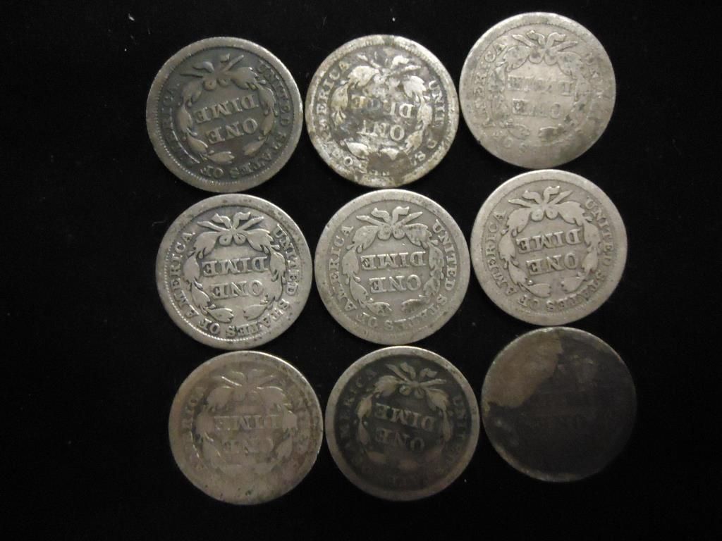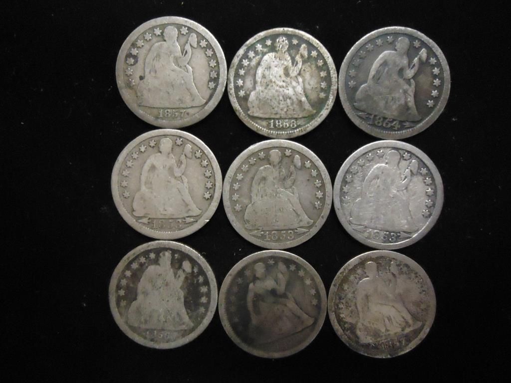 9 ASSORTED 1850'S SEATED LIBERTY DIMES