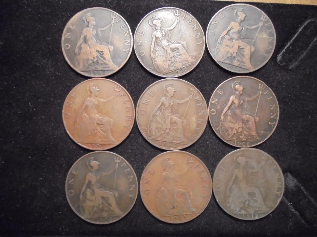 9 ASSORTED 1902-1932 GREAT BRITAIN LARGE PENNIES