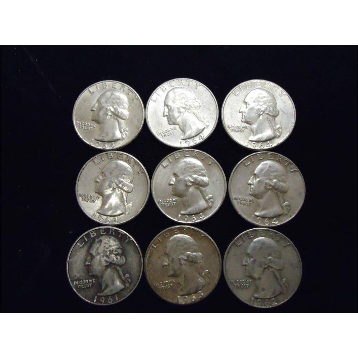 9 ASSORTED 1960'S WASHINGTON SILVER QUARTERS