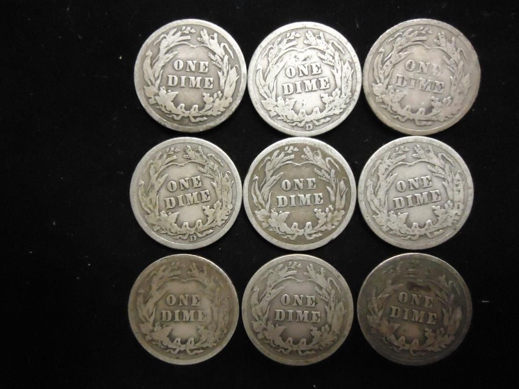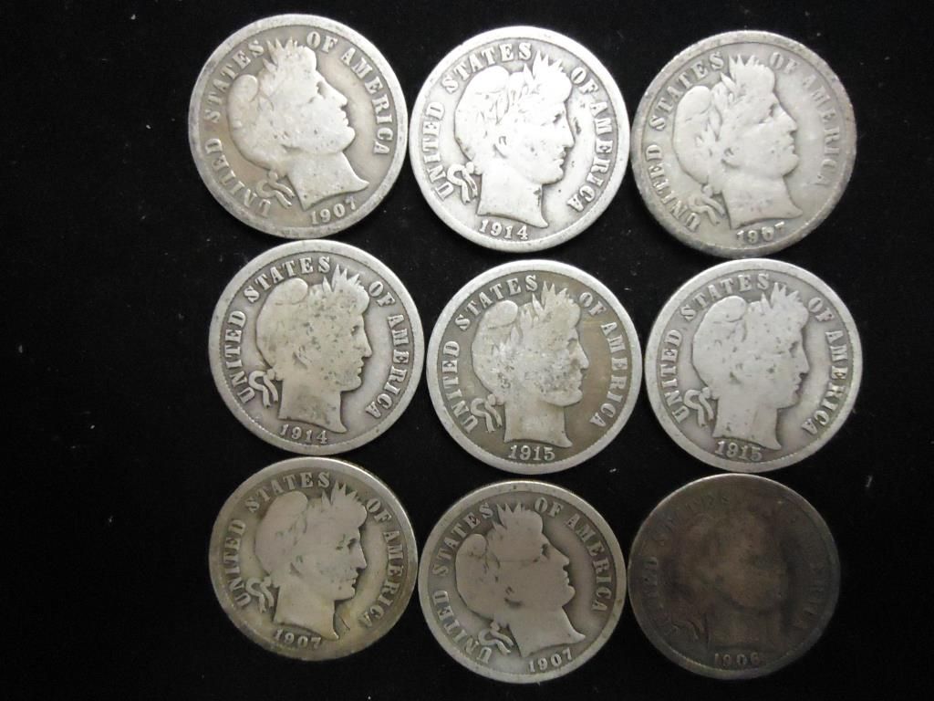 9 ASSORTED BARBER DIMES