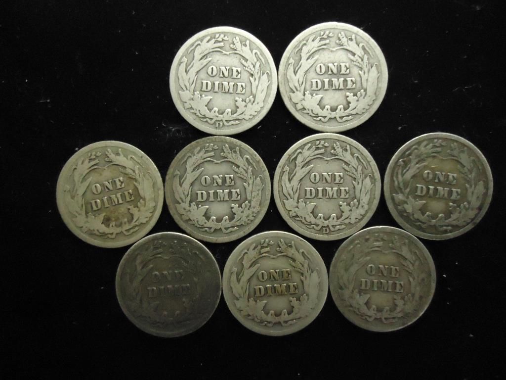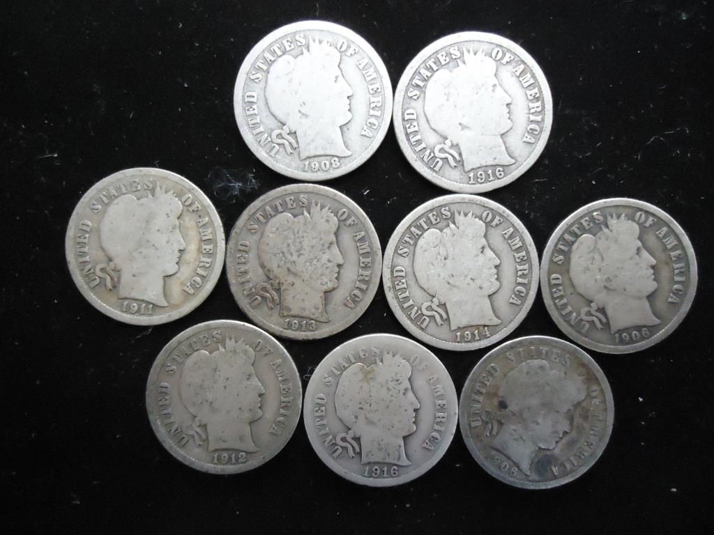 9 ASSORTED BARBER DIMES