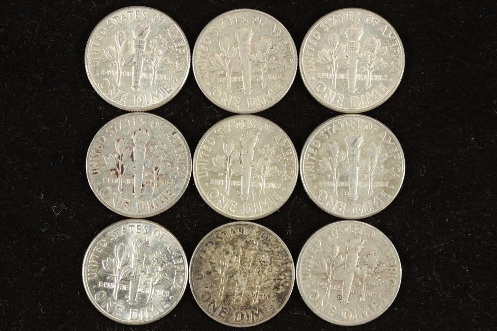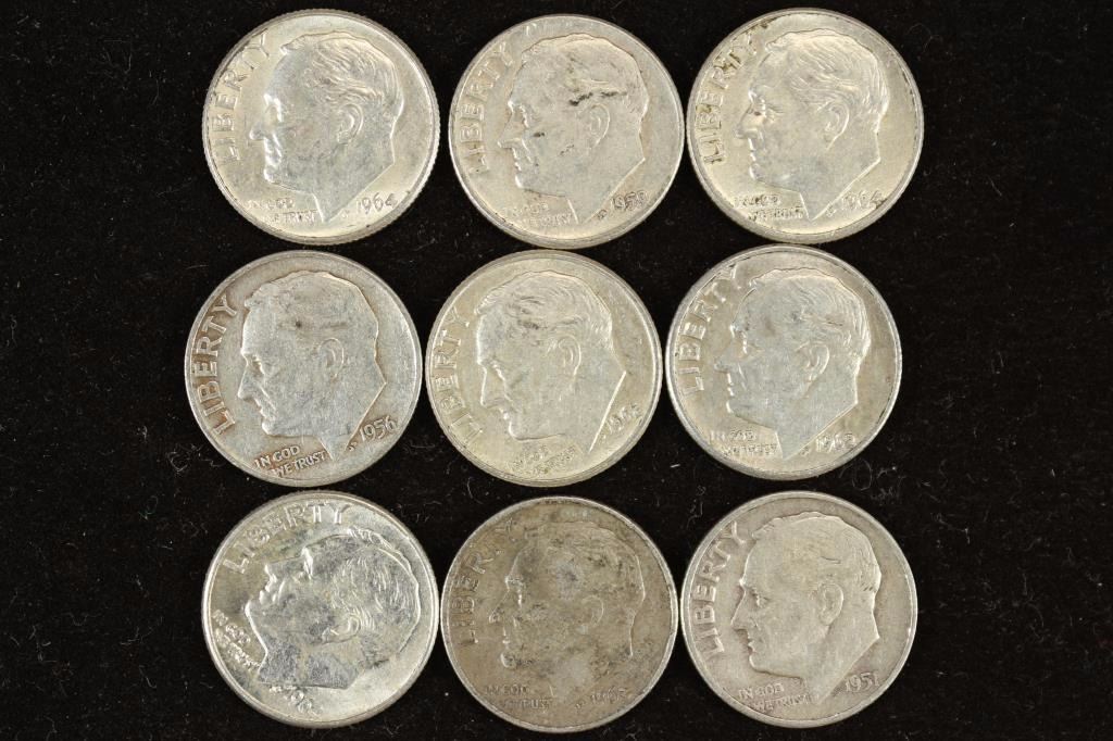 9 ASSORTED SILVER ROOSEVELT DIMES
