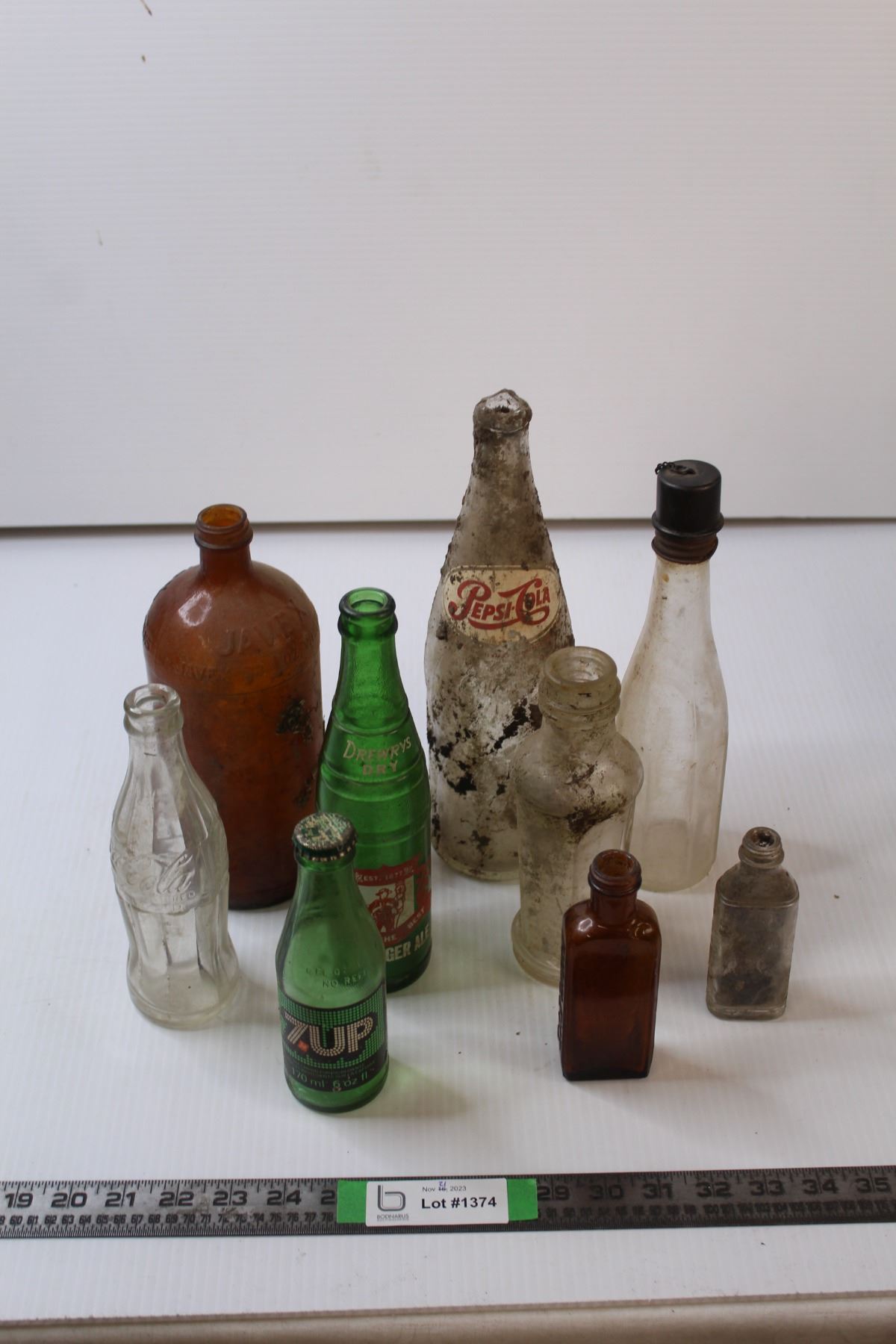 (9) Assorted Vintage Bottles Pepsi / 7up / Coke