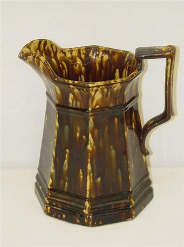 9" BENNINGTON FLINT ENAMEL 6 PANEL PITCHER - SMALL 1" STRESS LINE ON BOTTOM