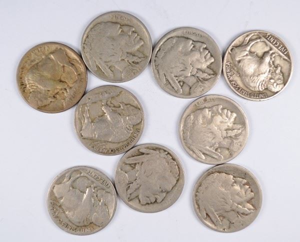 (9) BUFFALO NICKELS (13 I, 13-D I, 13 II, 14, 14-S, 15, 16, 16-D, 16-S)