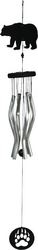 9" Bear WindchimeMeasures: These great looking and sounding windchimes feature 9" aluminum chimes, laser cut metal silhouette on top, and wood wind catchers. Over all height 35 1/4"H and base is 3 7/8"wide.