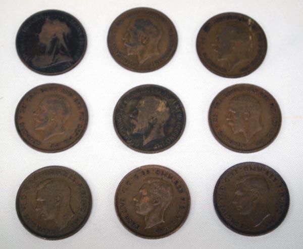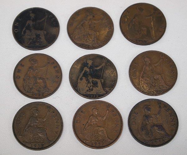 9 British One Cent Coins. 1896-1919-1920-1921-1935-1936-1937-1938-1939. Buyers Pay Actual Shipping and Handling Charges(see terms and conditions for more information)