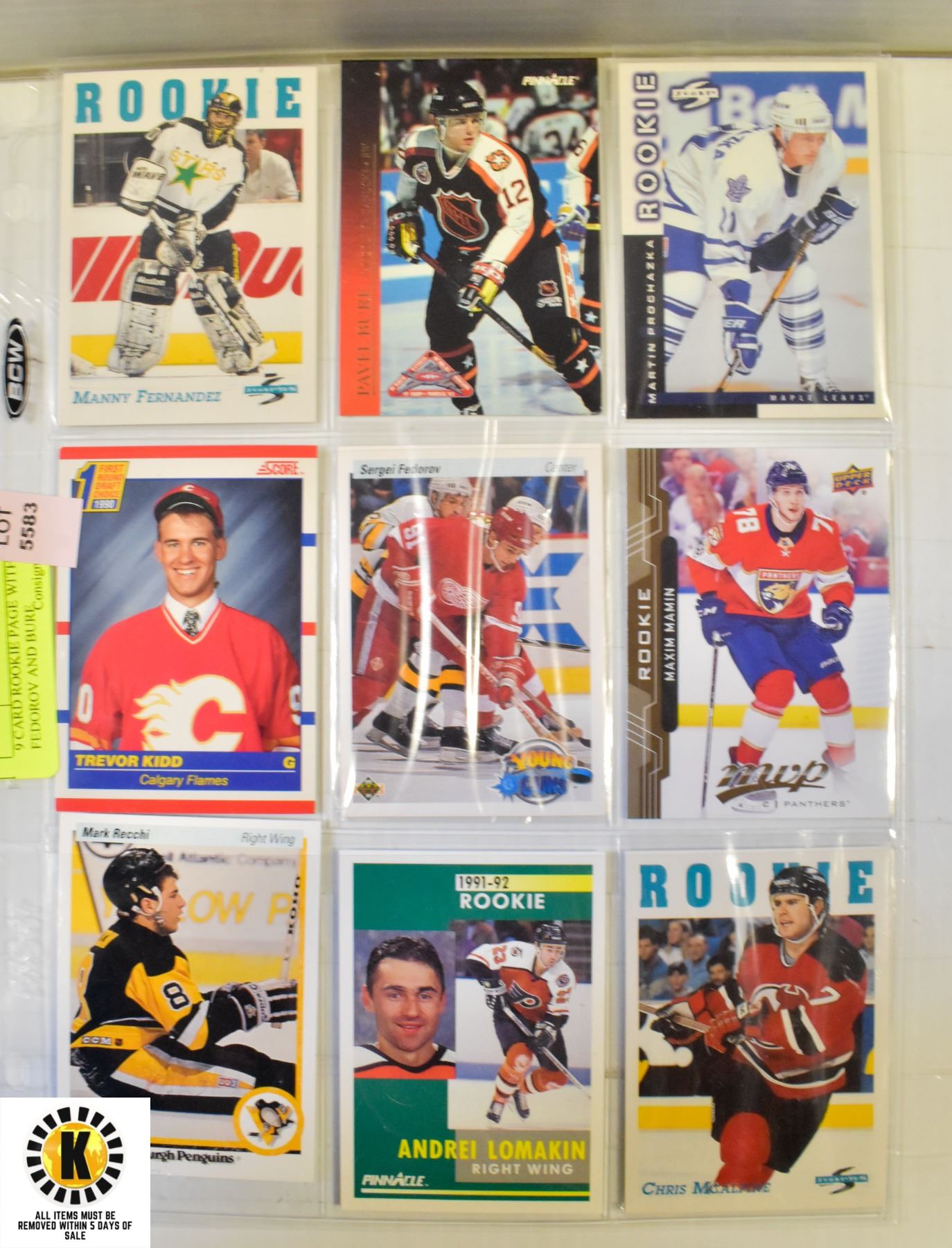 THIS PAGE INCLUDES 9 ROOKIE HOCKEY CARDS FEATURING SERGEI FEDOROV, PAVEL BURE AND MANY MORE