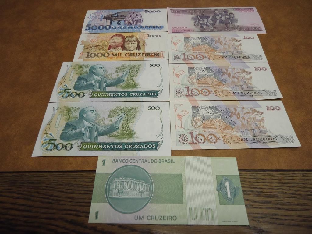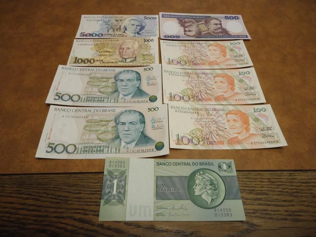 1,3-100,3-500,1000 & 5000 CRUZEIRO A FEW CONSECUTIVE SERIAL NUMBERS