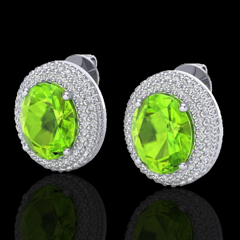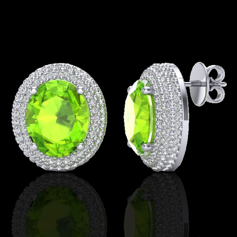 REF-186W8F -20230 ---- 9 CTW Peridot & Micro Pave VS/SI Diamond Earrings 18K White Gold ---- Luxury Designer Brand Earring Appraised at $13,350 Certificate Number US20230 18k White gold, Earring Size is 5/8 Inches, Earring measuring approx. 5/8 X 1/2", weighing in total approx. 6.3 grams. Made in the USA and is stamped 18k, Main stone 7.5 carat total weight containing 2 pieces of Intense Green color with AAA quality Oval shape cut Peridot , Stone #2 1.5 carat total weight containing 204 pieces of H-I color with VS/SI quality Round shape cut Diamond