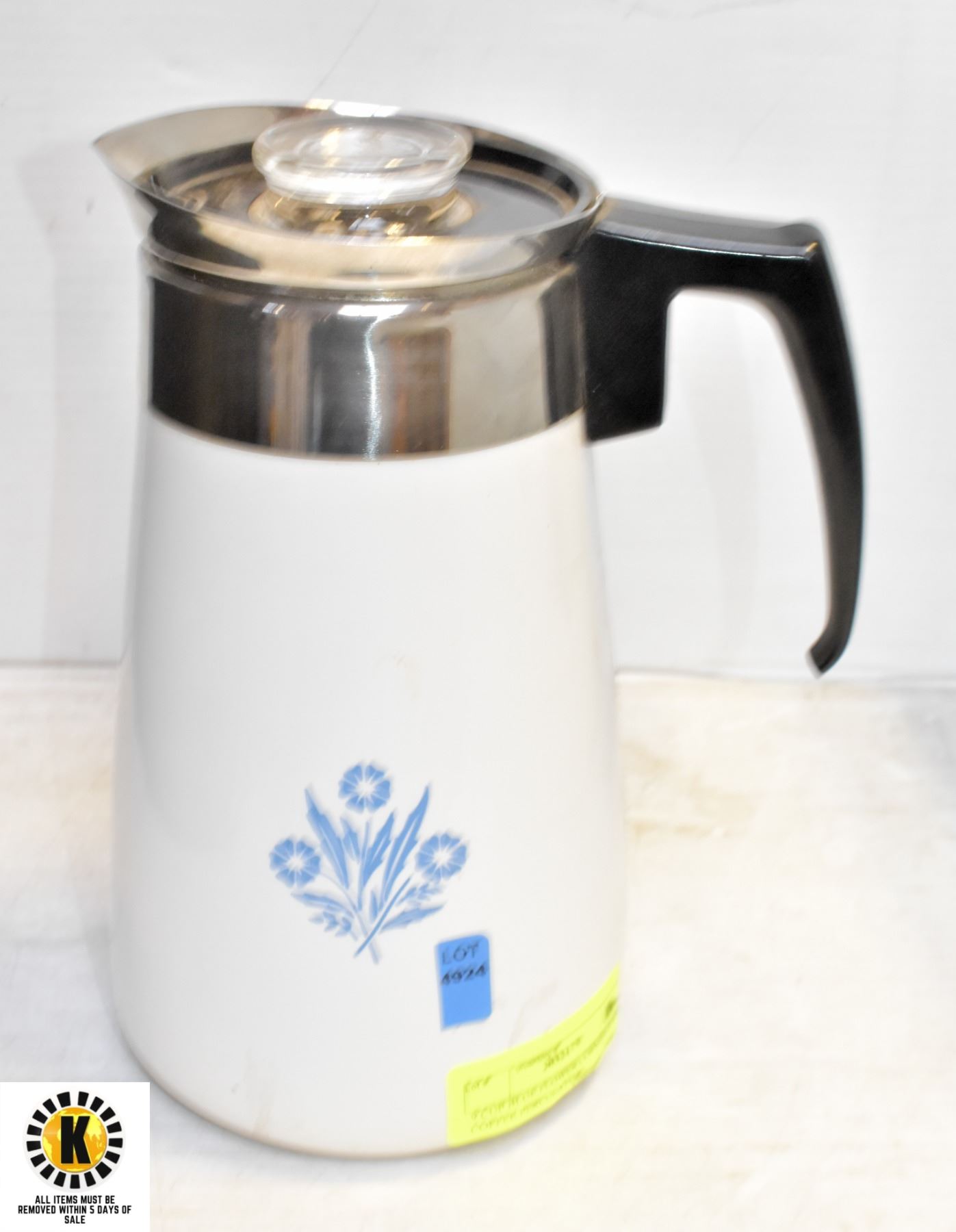 9 CUP BLUE FLOWER CORNINGWARE COFFEE PERCULATOR