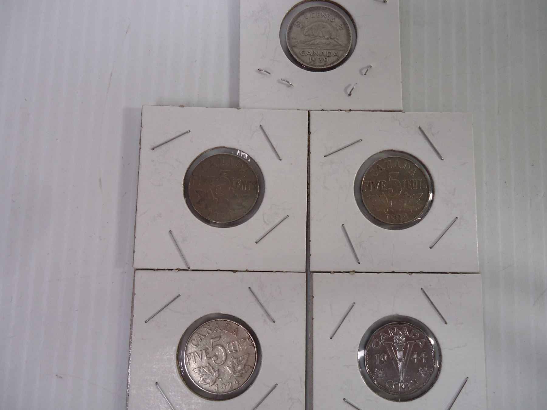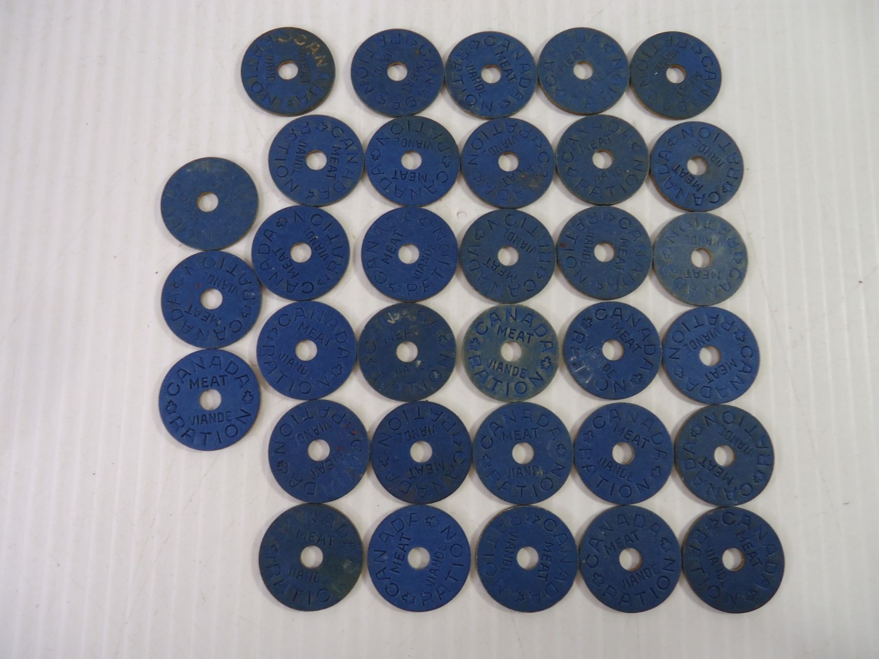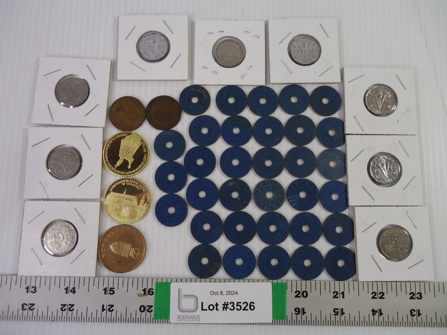(9) Canadian Nickels, Tokens and (33) WW II Meat Ration Tokens