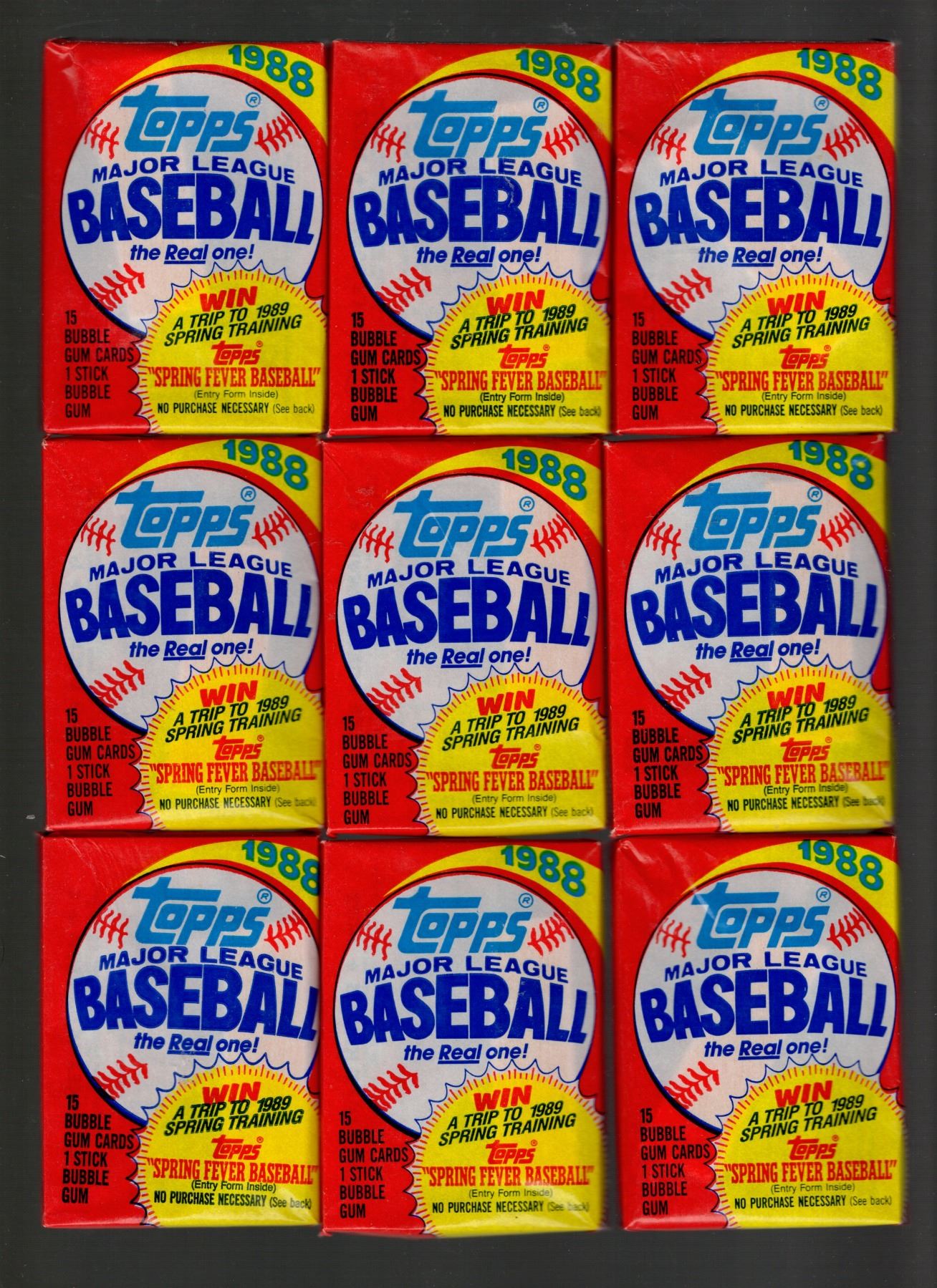 9 Count - 1988 Topps Series 1 Baseball Retail Box Packs - 135 Total Cards