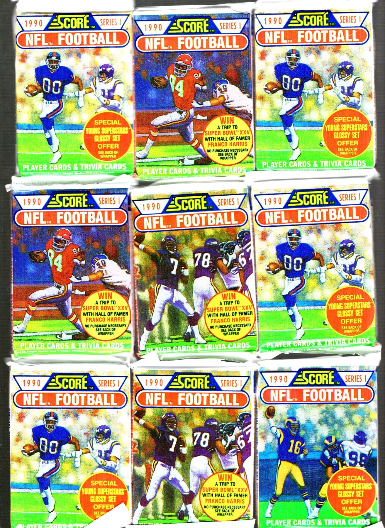 9 Count: 1990 Score Series 1 Football Retail Box Packs - 144 Total Cards