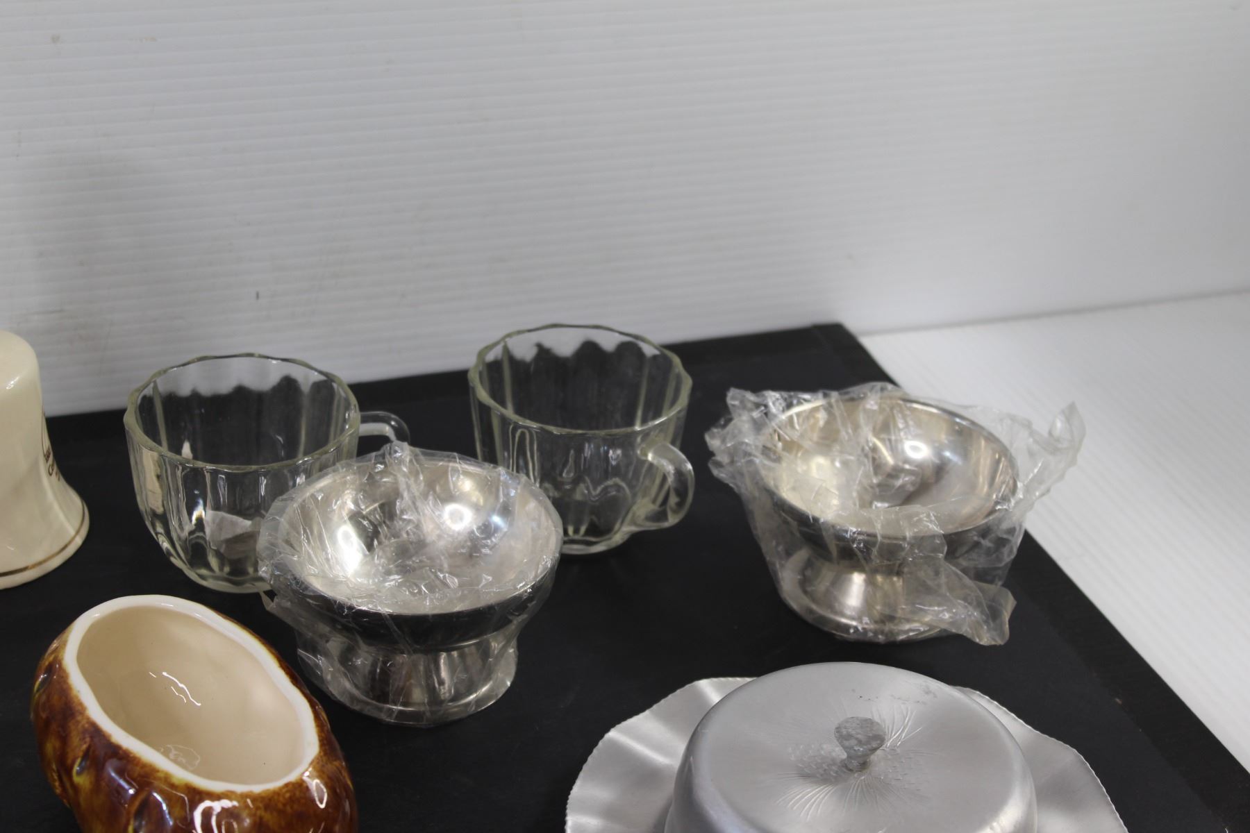 (9) Cups, Bowl, Bowl With Spoon, Tray, Misc.