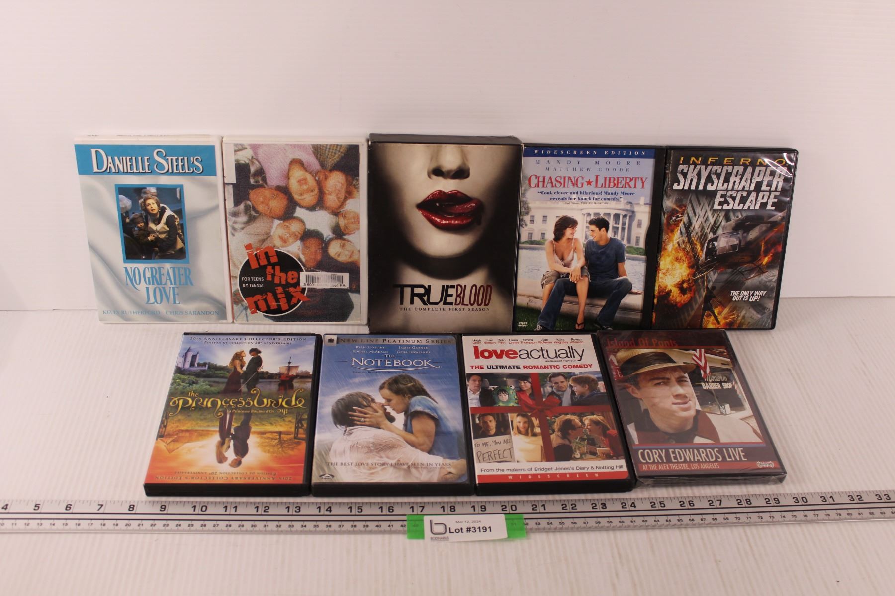 (9) DVDS: True Blood Season 1, Princess Bride, Notebook, Misc.