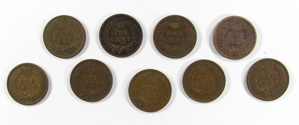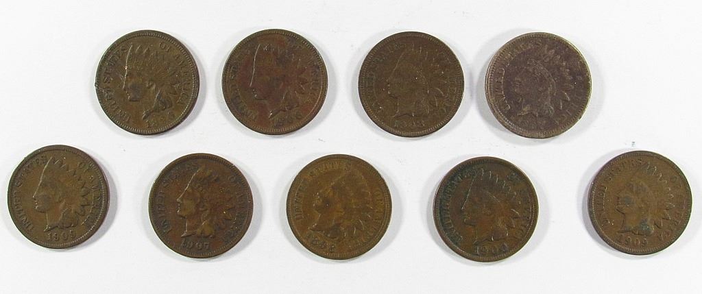 9- F/VF INDIAN CENTS- 1862, 1890, 1898, 1900, 1906