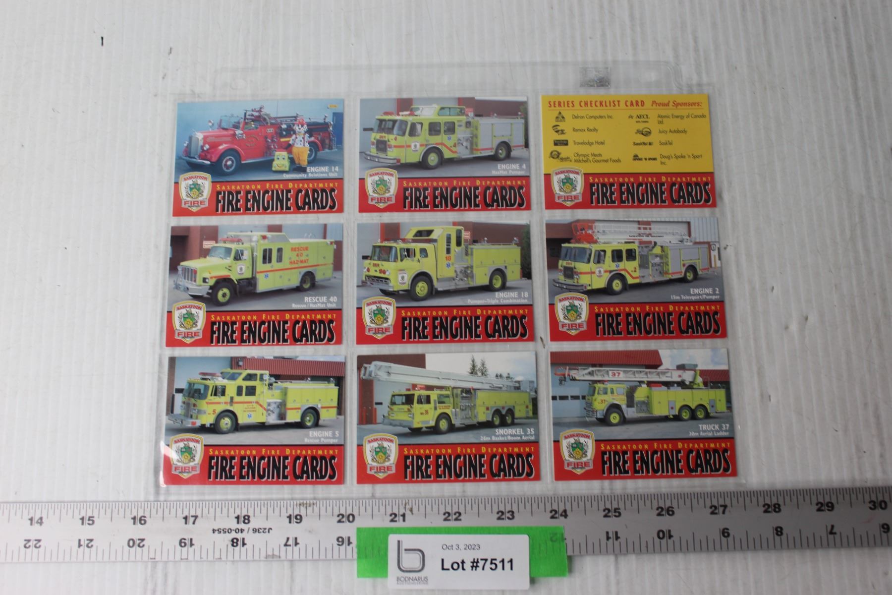 (9) Fire Engine Trading Cards