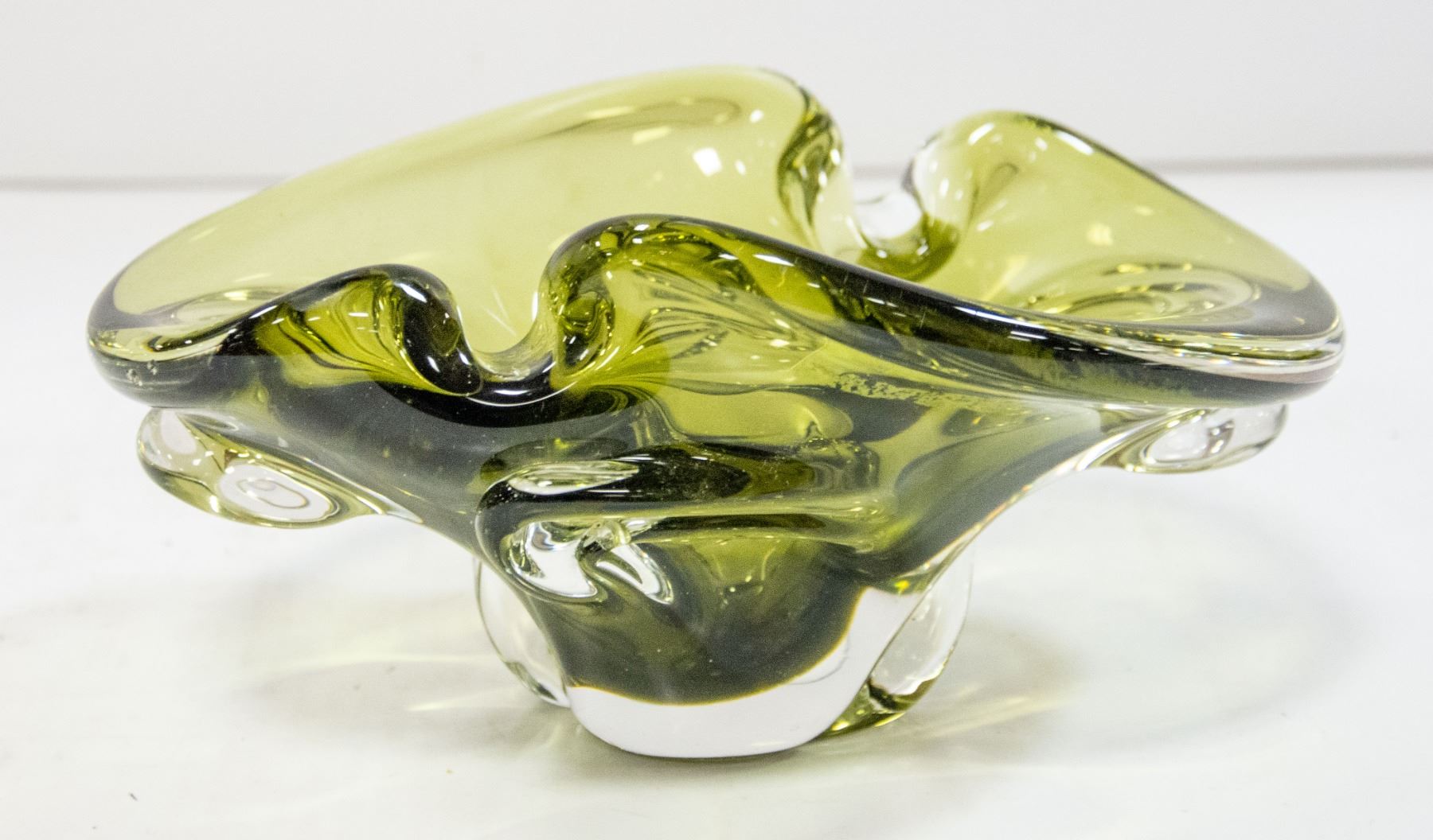 9" GREEN MURANO ITALY ASHTRAY NO CHIPS/CRACKS
