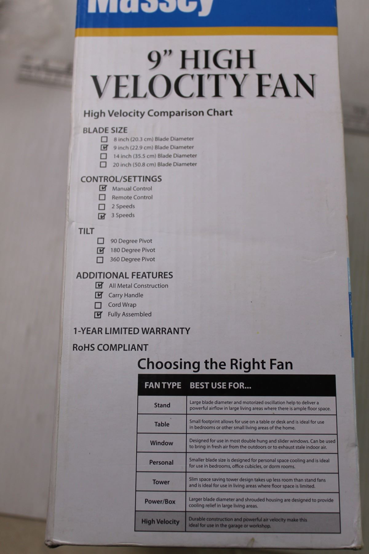 9" High Velocity Fan in Box