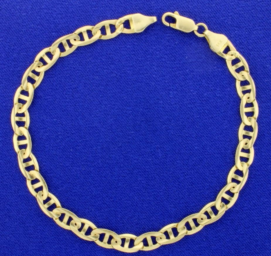 14K yellow gold, it is 6mm thick with lobster clasp. 9.6g