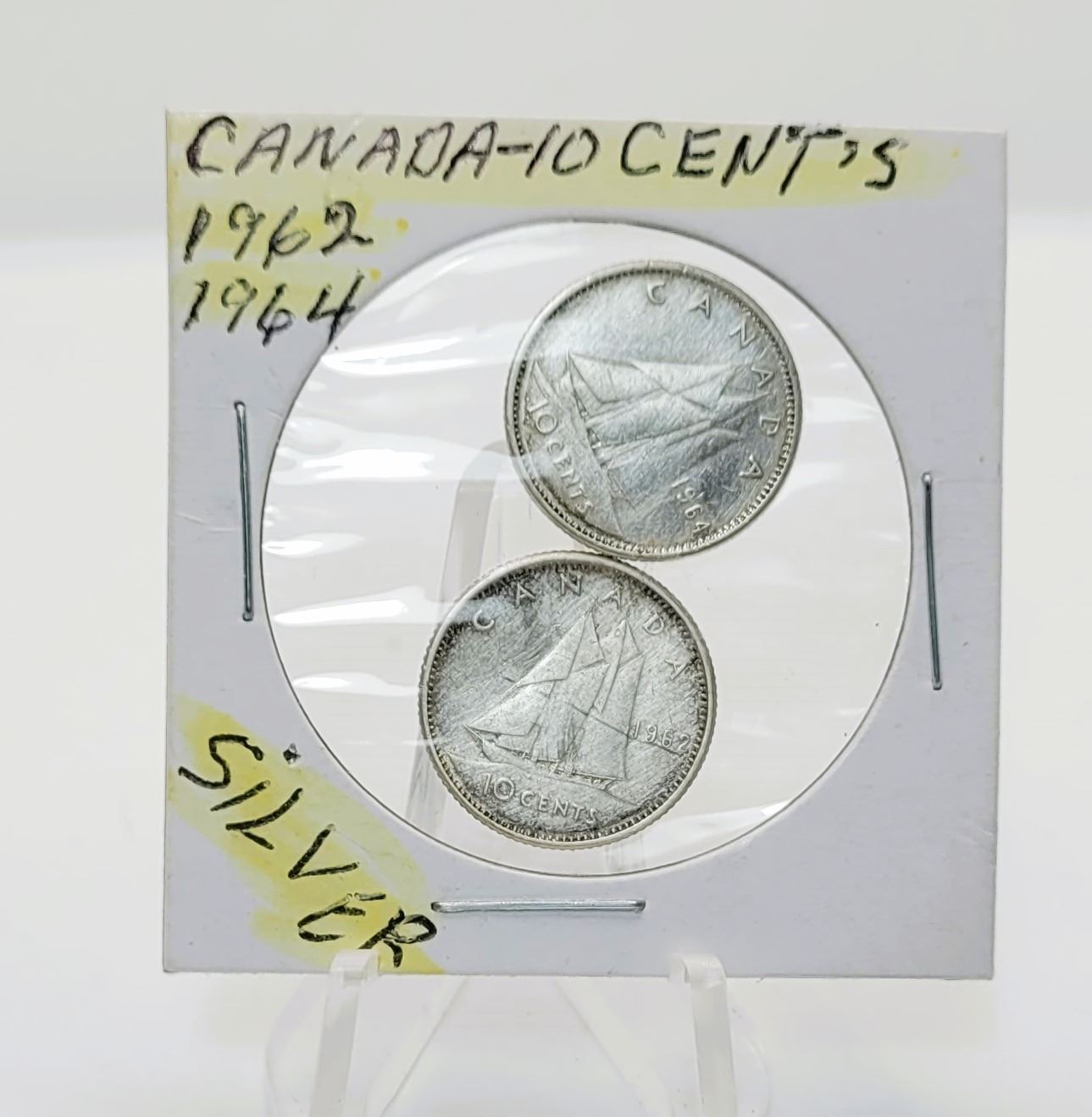 9) LOT OF 2 CANADIAN SILVER DIMES, 1962 & 1964.