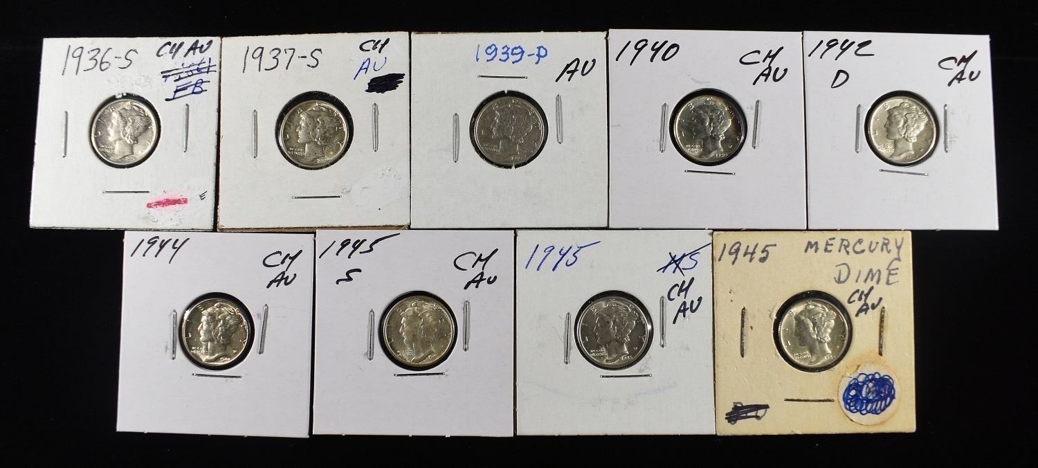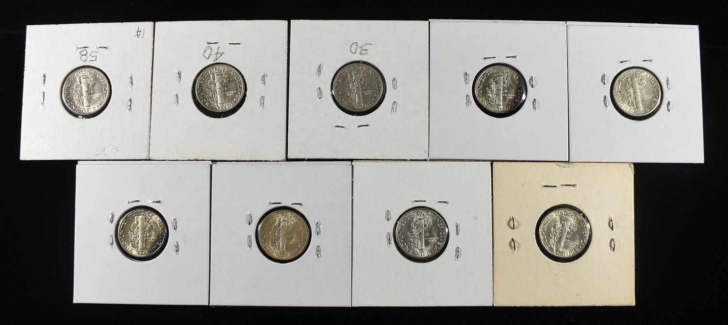 1936-S, 1937-S, 1939, 1940, 1942-D, 1944, 1945, 1945 & 1945-S MERCURY DIMES ESTIMATE $100 - $150.