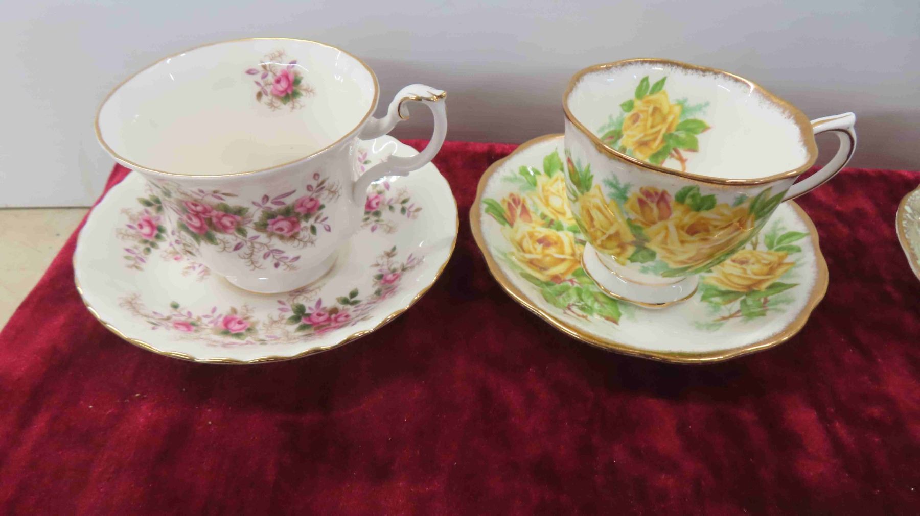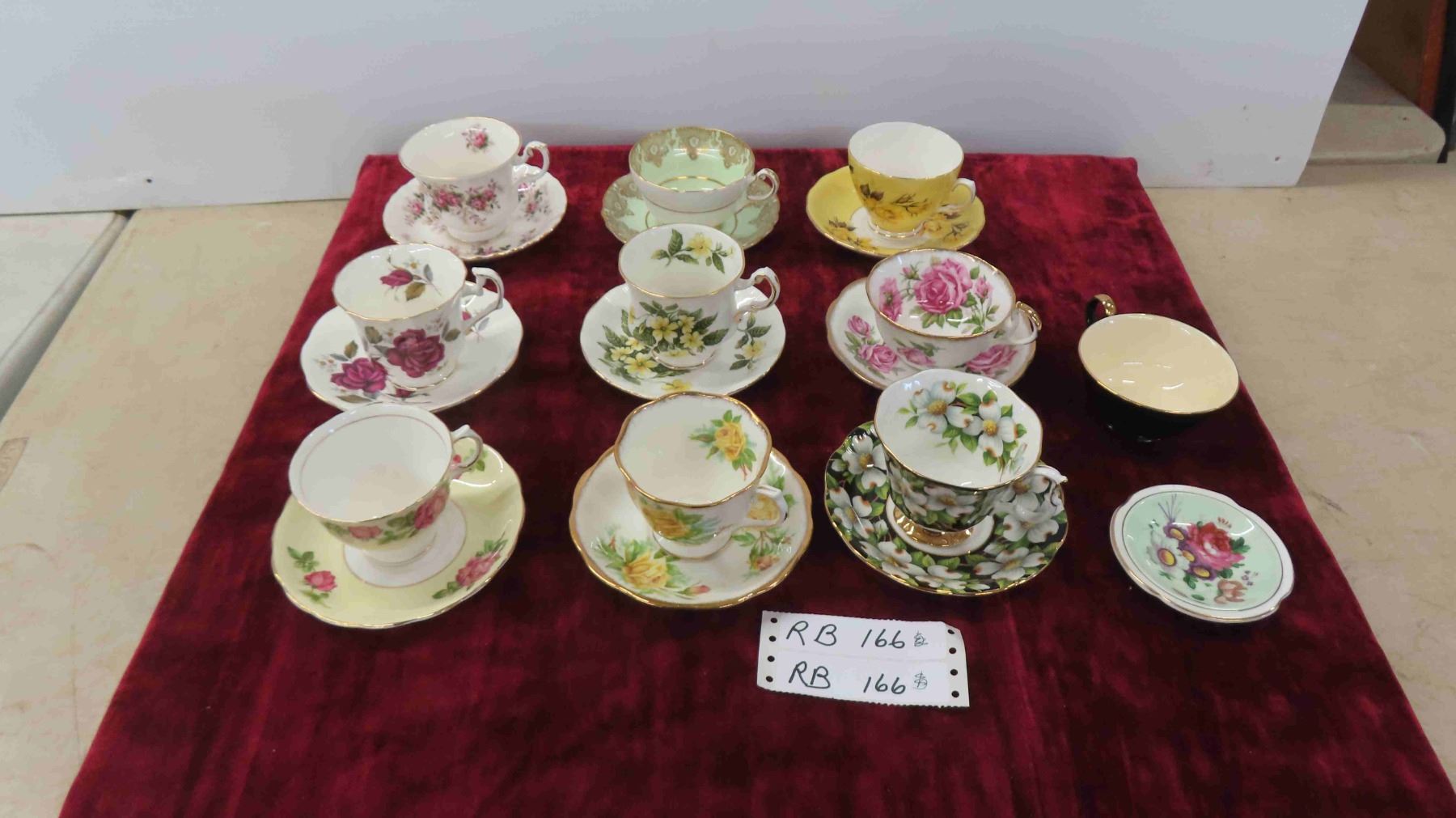 9 Matching Cups + Saucers ; Royal Albert, Paragon, plus others