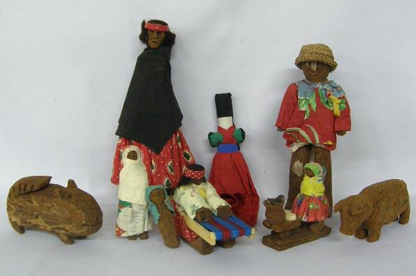 9 Mexican Tarahumara Dolls and Carved Animals. Measures 8.25''x3.25''. SHI $20.