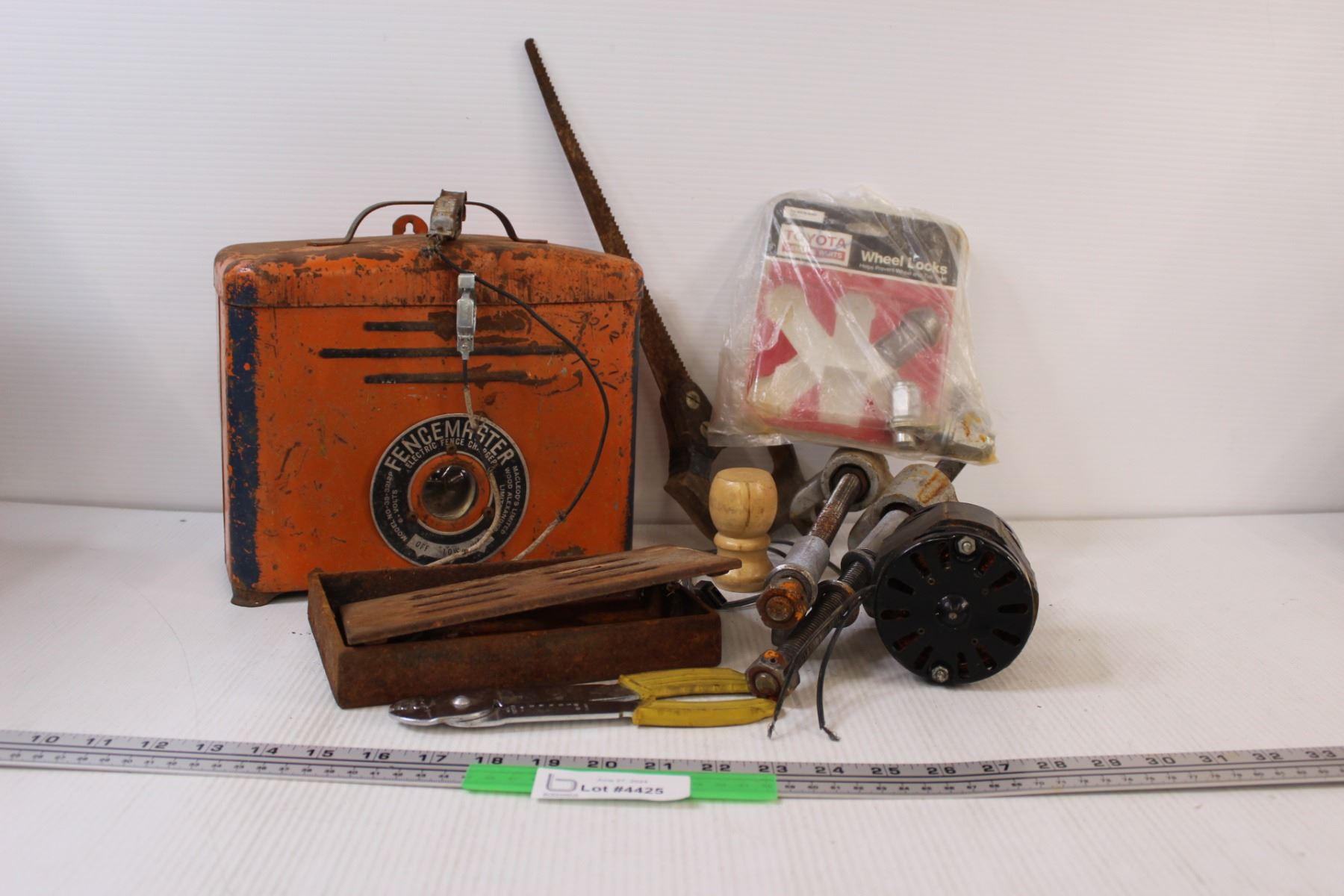 (9) Misc. Lot of: Vintage Electric Fence Power Box; Metal Gear Pullers; Misc.