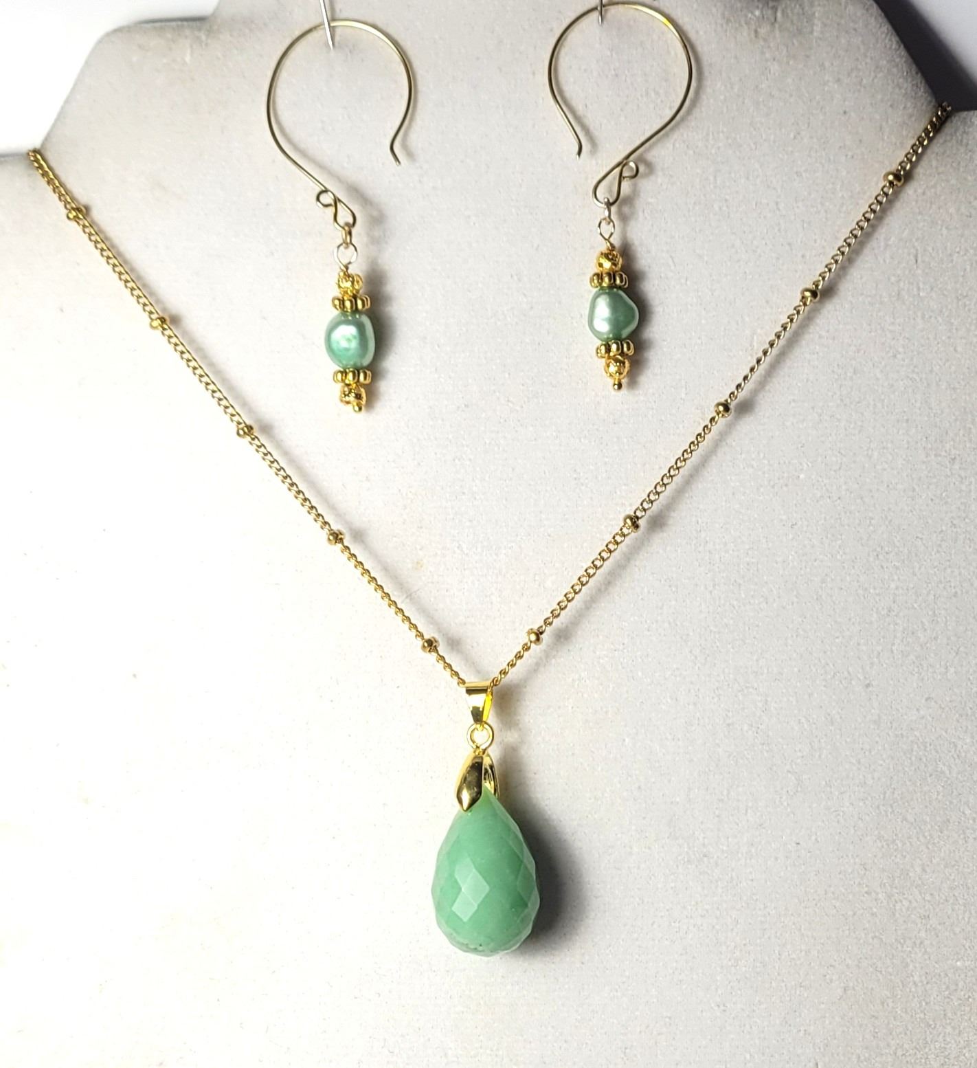 PENDANT ON 18" CHAIN & COORDINATING FRESH WATER PEARL DROP EARRINGS. JEWELLERY