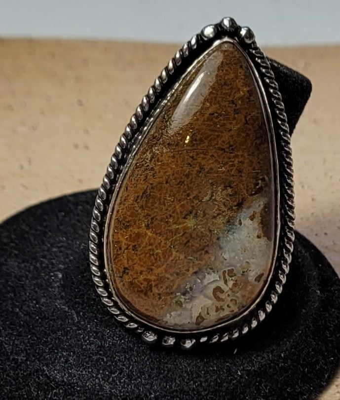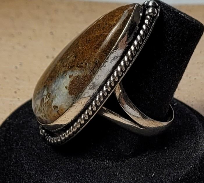 SIZE 8 RING, TWISTED ROPE SETTING STAMPED 925. JEWELERY
