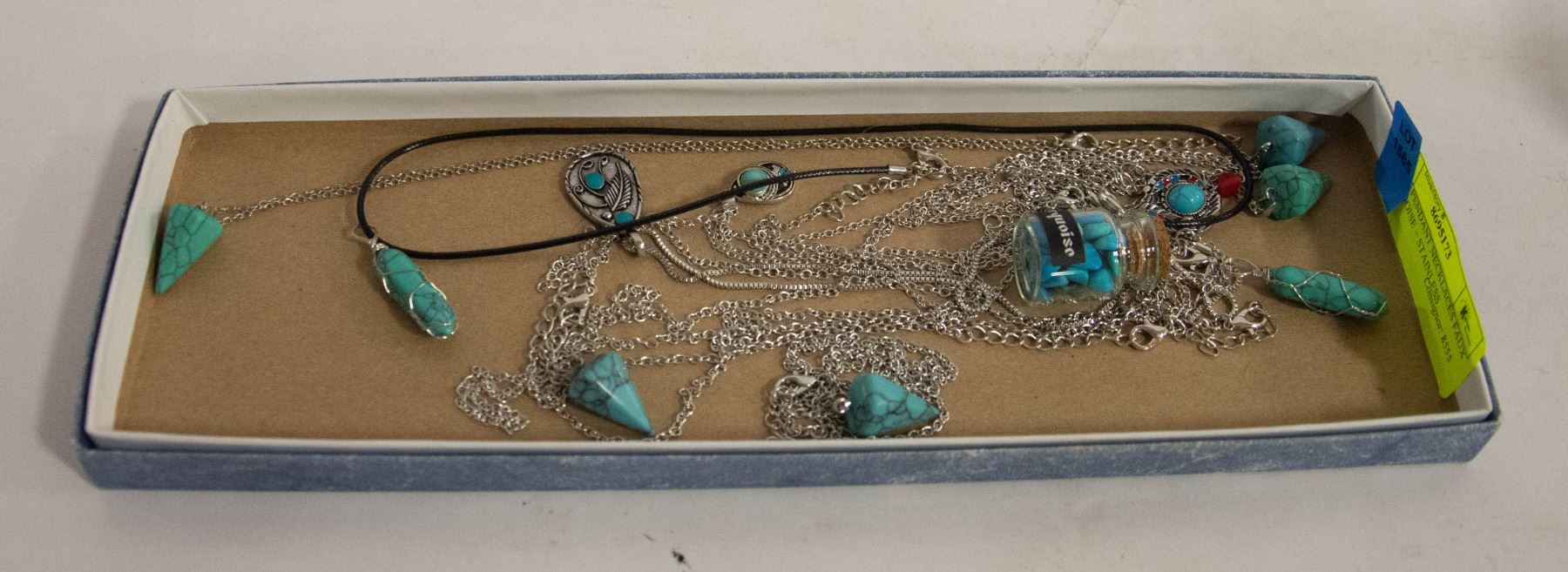 STEEL INLAY PENDANTS WIRE WRAPPED AND MORE + LOOSE GEMSTONES IN MINI GLASS JAR **ALL ITEMS MUST BE REMOVED BY 5PM SATURDAY, JULY 29TH 2023. ALL REMAINING ITEMS WILL BE SUBJECT TO A $6.00 PER DAY STORAGE CHARGE. ANY ITEMS REMAINING AFTER MONDAY, AUGUST 14TH, 2023 WILL BE CONSIDERED FORFEITED. NO REFUNDS WILL BE ISSUED FOR FORFEITED ITEMS. TO SCHEDULE A PICK UP APPOINTMENT CLICK HERE