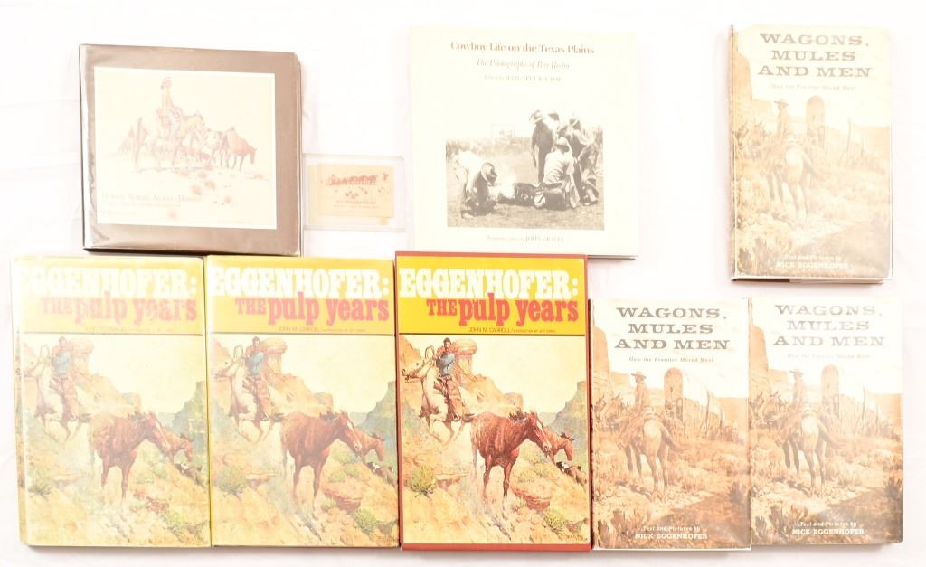 (2) "Wagons, Mules and Men" 1961 First Editions. "Cowboy Life onThe Texas Plains" 1982 First Edition. "Horses, Horses, Always Horses" 1981 First Edition. (3) "The Pulp Years" 2 are 1975 First Editions.